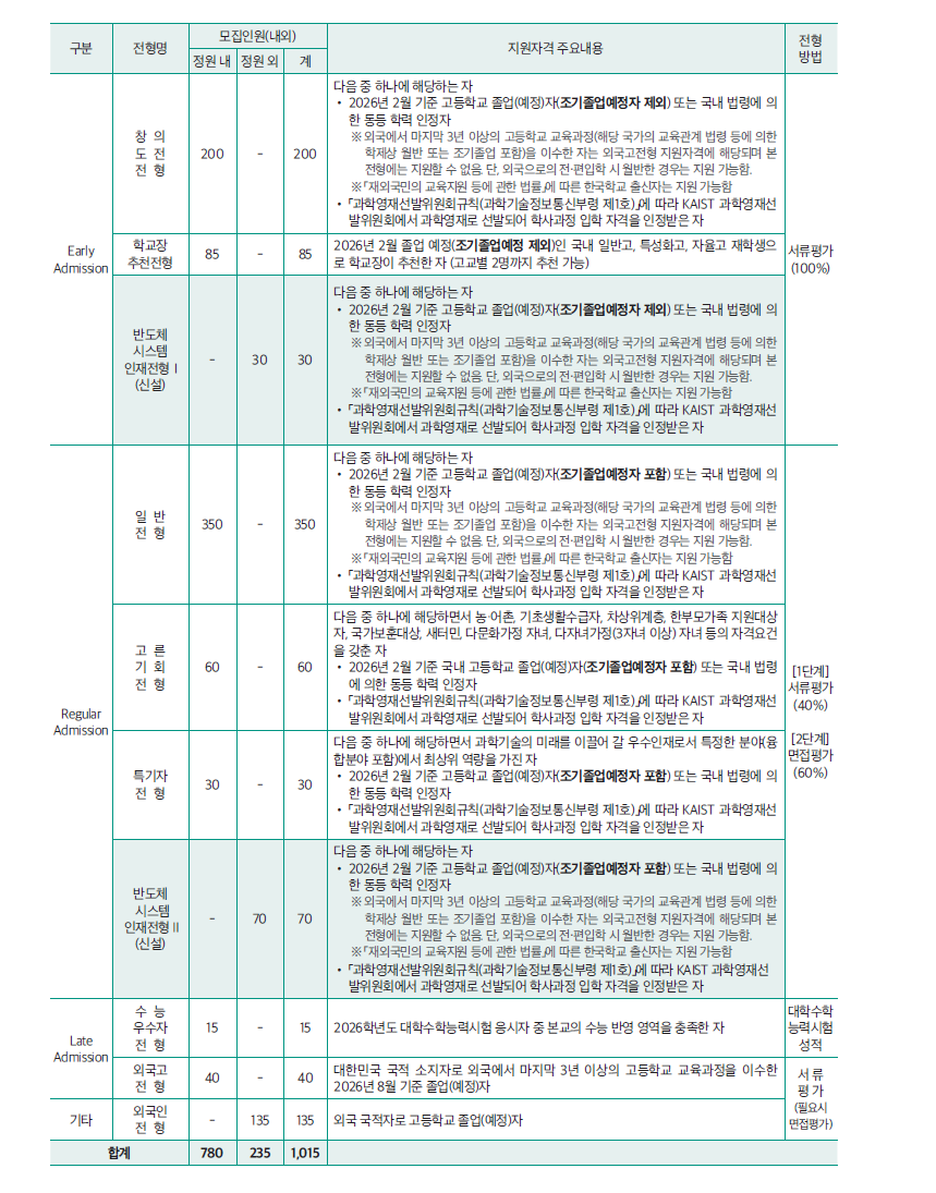 2026학년도 입학전형 개요 및 2026학년도 학사과정 조기진학을 위한 과학영재 선발 제도 안내